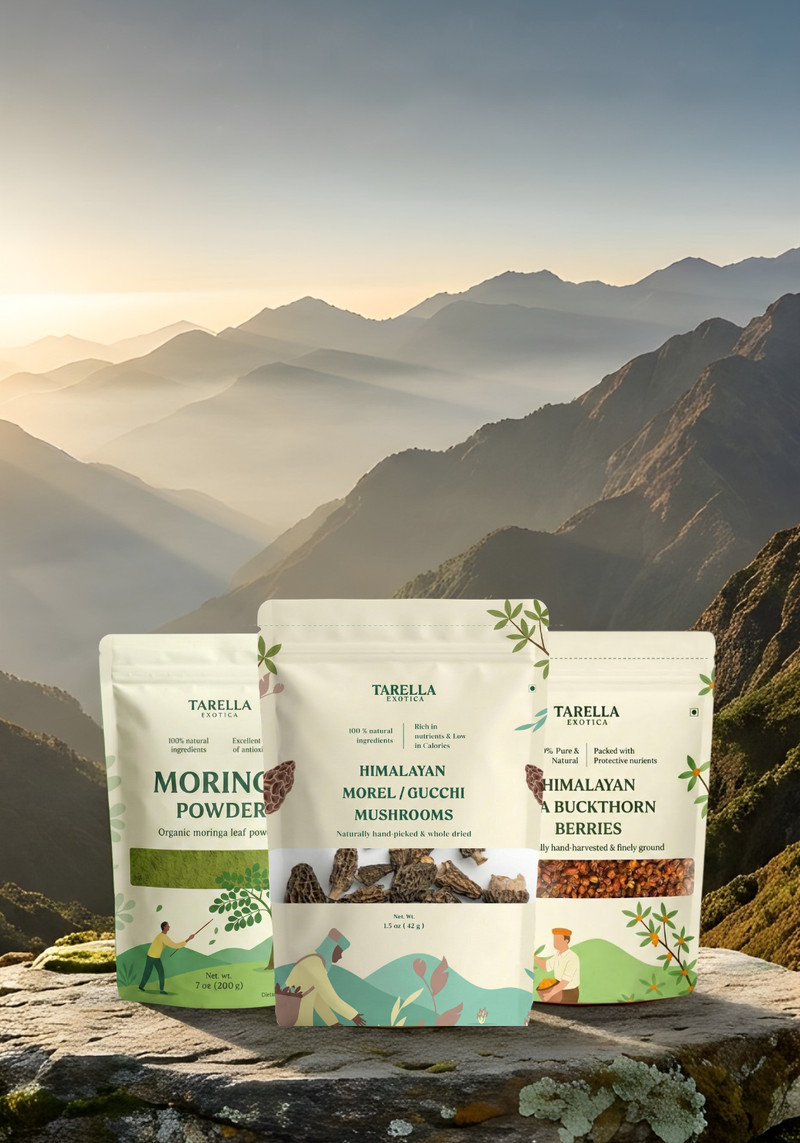 Tarella Exotica is a premium wellness brand rooted in purity, authenticity, and Himalayan excellence. We specialize in sourcing and delivering rare, high-quality superfoods like Morel (Gucchi) mushrooms, Sea Buckthorn, Moringa, and natural honey. At Tarella Exotica, we believe in offering luxury wellness straight from nature — pure, powerful, and trusted.
